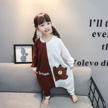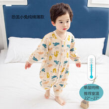 义乌小商品馆 婴儿睡袋春秋纯棉薄款男女宝宝1儿童分腿连体睡衣0-6个月2岁孩子3DiBe ZF4.8 绿熊纯棉薄睡袋 80码