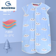 婴儿睡袋春秋薄款纯棉纱布分腿春夏季宝宝中大儿童防踢被四季通用 六层-蘑菇 M码-衣长70cm(0-1岁)图1