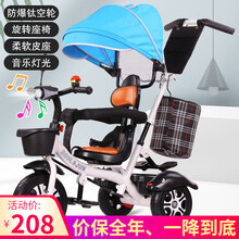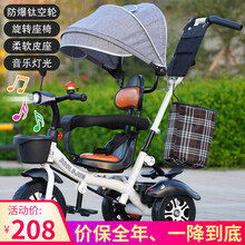 【双向推行】儿童三轮车小孩婴幼儿童车轻便遛溜娃手推车宝宝三轮脚踏车带护栏棚1-2-3-4-5岁 黑灰色+【皮革软座椅、软靠背】音乐灯光+橡胶钛空轮 1:【带音乐灯光】2:【皮革软座椅、软靠背、宝宝不再硌屁股】3:【座椅可以向后转、双向推行、宝宝可以和妈妈面对面】4:【送大购物挂篓】5:【晒图返现5元】
