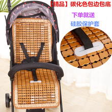 婴儿手推车凉席夏季幼儿童宝宝小孩安全座椅通用透气竹席垫子可用 【包边包底】香槟色推车凉席 一段式 39CM*85CM图1