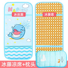【Evich】婴儿推车凉席冰丝藤席宝宝车双面竹席麻将席通用夏季透气儿童坐垫 泰迪熊【冰丝面+冰藤面】两面可用 33*75cm