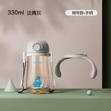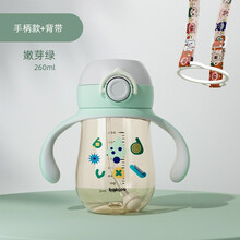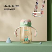 bablov宝宝学饮杯儿童吸管水杯PPSU喝水杯防呛婴儿鸭嘴杯奶瓶大宝宝防摔 粉蓝色260ml手柄款(配背带)图1