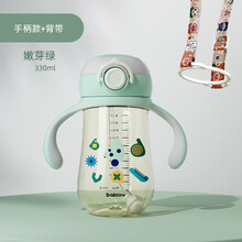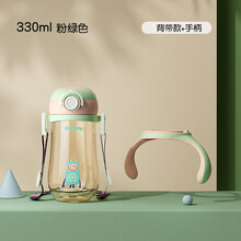 bablov宝宝学饮杯儿童吸管水杯PPSU喝水杯防呛婴儿鸭嘴杯奶瓶大宝宝防摔 粉蓝色260ml手柄款(配背带)