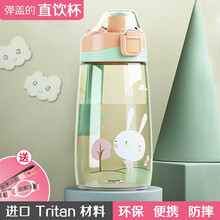 京东超市 TOL儿童塑料吸管杯夏季小学生水瓶男女可爱防摔便携宝宝直饮水杯幼儿园恐龙兔子图案Tritan环保杯子 直饮弹盖杯-青介绿(配背带绳)500ml 直饮水杯,设计别致可爱,产品包装不配吸管,如有需要,可联系客服赠送