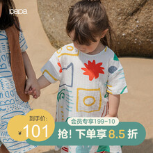 papa爬爬夏男女宝宝泡泡纱背带裤涂鸦印花长裤儿童裤子薄款0-2岁 中蓝色 90cm图1
