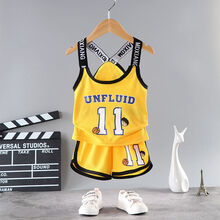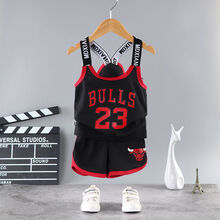 迪士尼新款礼物儿童篮球服女童吊带运动速干衣套装男童夏季无袖短裤两件套1-9岁小孩子穿的儿童篮球服 背带-红色23号 90 适合身高90cm以下