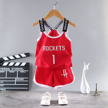 迪士尼新款礼物儿童篮球服女童吊带运动速干衣套装男童夏季无袖短裤两件套1-9岁小孩子穿的儿童篮球服 背带-红色23号 90 适合身高90cm以下图1