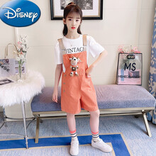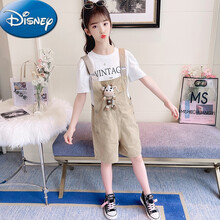迪士尼(Disney)女童背带短裤套装夏装洋气2021新款女大童时尚宽松夏季儿童两件套陈大猪L妈同款 单件粉色背带裤 150建议身高145厘米