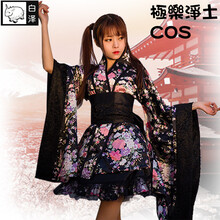白泽极乐净土演出服洛丽塔公主cosplay女装日式黑色樱花和服女仆装舞台跳舞表演服角色扮演 黑色樱花和服 M码37