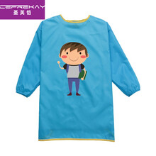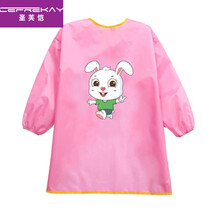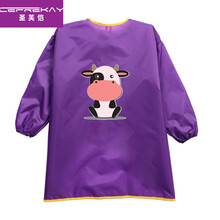 圣芙恺 儿童宝宝防水画画衣围裙反穿衣中大男女童长袖罩衣透气型宝宝吃饭罩衣围兜绘画婴幼儿罩衫小学生衣服 粉色奶牛 中号合适105-135cm图1