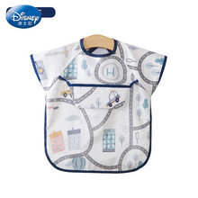 迪士尼官方旗舰新品婴儿吃饭罩衣夏季薄款防水防脏围兜儿童围裙纯棉无袖画画反穿衣服小孩子夏天吃饭穿的 动物园-ZY002 100(14码适合1-2岁宝宝)