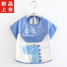 ℂ℘【商场品质】迪士尼宝宝罩衣儿童吃饭围兜衣防水夏季薄款透气反穿衣饭兜婴儿防脏护衣 短袖呆呆狮绿 90((90码建议0-2岁))图1