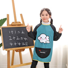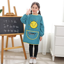 大童罩衣儿童羽绒服罩衣吃饭防水防脏宝宝围兜长袖画画衣女孩饭兜男童反穿衣加长 绿色小帽 100(码建议身高90-105cm)图1