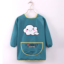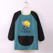 大童罩衣儿童羽绒服罩衣吃饭防水防脏宝宝围兜长袖画画衣女孩饭兜男童反穿衣加长 绿色小帽 100(码建议身高90-105cm)