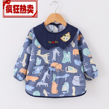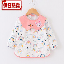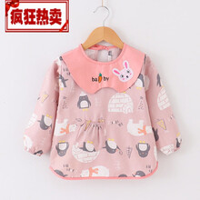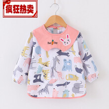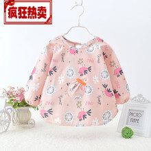 ゐ℘新品回馈 小孩子防水防脏衣服外套罩衣儿童罩衣男女宝宝纯棉薄款外穿防水防脏吃饭围兜婴幼儿围裙反穿衣 长袖【黄花色】 14码【建议0-1岁】图1