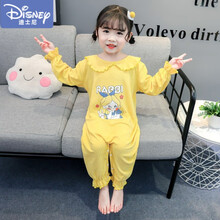迪士尼商场同款自l营 女童连体睡衣夏季薄款宝宝长袖防踢空调夏款儿童连体衣纯棉女孩 粉色 110cm 优惠尽在