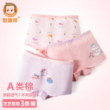超市 恒源祥3条盒装女童内裤儿童95精梳棉A类舒适透气平角裤女宝宝短裤小孩女孩三角底裤四角裤头 草莓波波 130码 建议身高115-125体重40-50斤