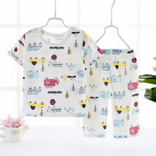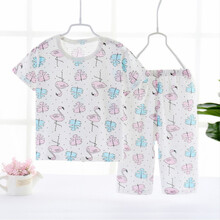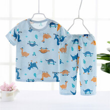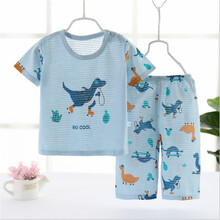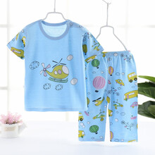 2021新款儿童夏季套装透气纯棉短袖空调服韩版男女宝宝薄款家居服童装 短袖-粉底草莓树 90cm图1