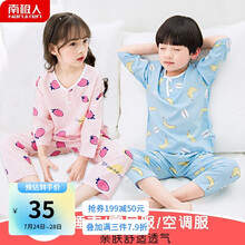 南极人儿童睡衣套装女孩夏季棉绸男孩宝宝空调服1-12中大童男童女童春秋长袖薄款绵绸家居服 粉蝴蝶结(七分袖) 80码(120cm)