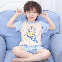 ゐ新品牌特价童装适合1-14岁6小孩穿的夏季儿童睡衣男短袖套装儿童宝宝卡通萌娃空调家居服薄款夏天闪电 双短套装蓝米奇 8码【95-110身高】