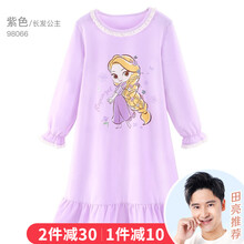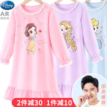 迪士尼女童睡衣棉长袖睡裙女孩公主儿童2021新款春秋宝宝家居服 灰姑娘蓝色 120cm A类棉|活性印花