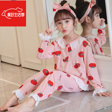 迪士尼3-6岁好看的7-12岁儿童睡衣女春秋季纯棉长袖薄款公主风女童宝宝女孩空调家居服套装小孩子的 束口-粉草莓+送发带 10码【110cm-120cm】