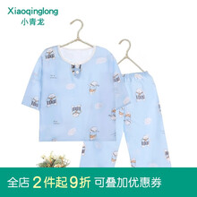 小青龙夏季儿童棉绸睡衣男童女童宝宝绵绸小孩夏天八分薄款男孩空调套装 蓝小熊(男宝宝) 58码/90cm(建议80-88cm)