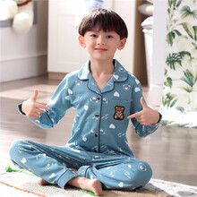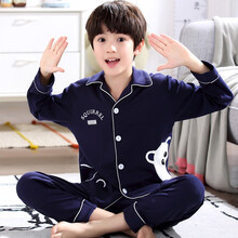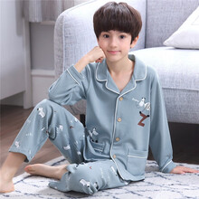 柔臣春秋季秋冬季中童中大童男童家居服男生青少年小孩男孩学生儿童纯棉全棉睡衣宝宝长袖开衫套装小童居家服 ypf232长袖男 16码 130-140CM图1