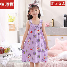 恒源祥 《国货之光》自l营旗舰官方店夏季儿童睡裙小女孩短袖薄款可爱公主宝宝女童吊带睡衣卡通家居服 白兔 10# 建议身高110-120厘米图1