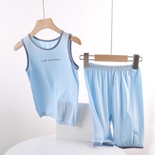 此心如衣男童睡衣夏季薄款冰丝无袖背心短裤套装套头两件套儿童莫代尔外穿家居服宝宝小孩中大童夏天 月光蓝 吊牌150码-建议身高140