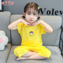 桃子贝贝女童睡衣儿童居家服薄童装新品宝宝夏季高腰护肚睡裤女孩夏天3岁纯棉莫代尔短袖空调小孩套装 粉色小丸子B3 110(建议升高105左右)