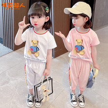 咪奇超人童装女童套装夏装儿童套装幼童小童1-7岁女宝宝运动卡通T恤裤子两件套夏季小女孩衣服 白色 110码建议身高95-105cm图1