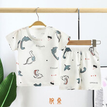 儿童睡衣薄款夏季可爱宽松男孩女孩服套装家居服小宝宝短袖短裤居家服夏天男童女童衣服可外穿T恤 竹节棉-水果派短袖 120(建议身高110-120cm)图1