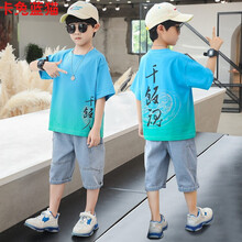 卡兔蓝猫童装男童套装夏装新款3男宝宝T恤牛仔裤男孩韩版时尚夏季短袖儿童套装 橘色 神兽 130 京东开学季】【好质量,好面料】,品质有保障,赠送运费险,一起下单更划算!