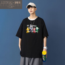 黎特斯(LITTYSKI)轻奢品牌【商场同款】天线宝宝印花短袖T恤男初中生大童可爱半袖体恤衫上衣服 蓝色 M 收藏店铺优先发货
