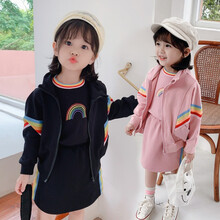 水花童 宝宝春秋装套装裙女婴儿童装女小童衣服秋季洋气女童小女孩三件套潮 粉外套加裙子+T恤 80图1