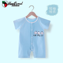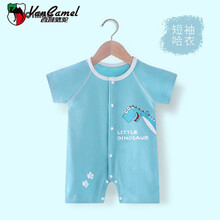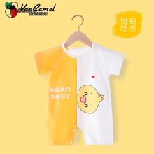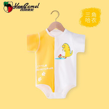 西域骆驼婴儿短袖连体衣网红超款男新生宝宝冰丝哈衣服开档棉无骨新品 黄色恐龙短袖 59cm图1