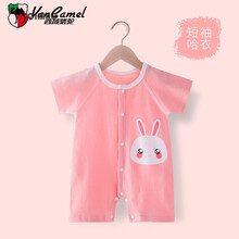 西域骆驼婴儿短袖连体衣网红超款男新生宝宝冰丝哈衣服开档棉无骨新品 黄色恐龙短袖 59cm