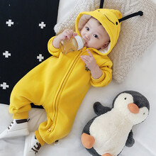秋冬季婴儿连体衣服双层加厚哈衣爬服新生儿宝宝冬装外出拉链潮 黄色加绒款 80cm 秋冬季婴儿连体衣服双层加厚哈衣爬服新生儿宝宝冬装外出服拉链潮 黄色加绒款 80cm