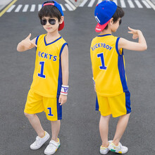 乐可鸭童装男童套装夏装新款3儿童运动球衣6中大童男孩球服8男宝宝夏季篮球服薄款 蓝色 1号 110