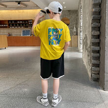迪士尼轻奢中童男装大童男装14岁一16岁男童衣服夏15岁男孩套装装韩版帅气2021新款中短袖儿童季运 孔雀蓝 120