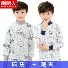 南极人儿童纯棉内衣套装男童中大童秋衣秋裤宝宝小孩中高领打底棉毛衫秋冬童装 麻灰+浅蓝 110(建议身高95-105CM) 螺纹袖口纯棉面料舒适柔软础打底不加绒此款两套装