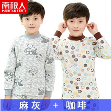 南极人儿童纯棉内衣套装男童中大童秋衣秋裤宝宝小孩中高领打底棉毛衫秋冬童装 麻灰+浅蓝 110(建议身高95-105CM)图1