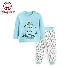 优贝宜 男童内衣套装纯棉宝宝长袖秋衣裤儿童春秋装中大童衣服 82166#牛奶瓶 100cm图1