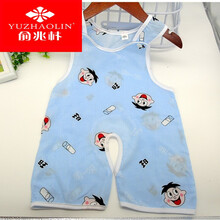 俞兆林俞兆林【品质童装】童装夏季棉绸人造棉儿童宝宝婴儿连体衣肩扣爬服哈衣护肚肚兜凉爽 青色小熊 73cm