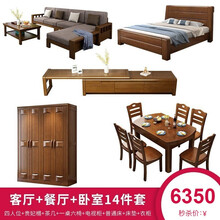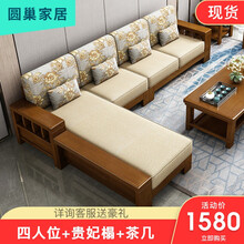 圆巢 实木沙发组合客厅家具中式现代转角沙发组合小户型木质沙发农村经济型布艺沙发 客厅家具 【特价款60cm/位】四人位+贵妃榻+茶几