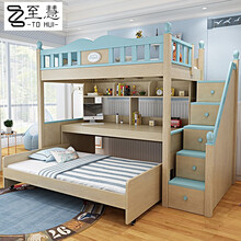 至慧家具 儿童床上下床双层上铺床下桌高低床带书桌床一体男孩女孩公主床子母床实木多功能组合成人 床架+书桌+梯柜(无椅子) 1200*1900