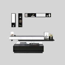 电视组合柜 现代简约北欧电视柜茶几组合墙柜中小户型黑胡桃色伸缩电视机柜 虎雀(HUQUE) 成套壁柜颜色需备注 整装