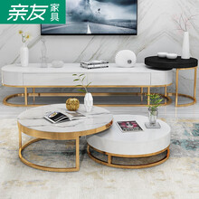 亲友 北欧意式极简轻奢茶几电视柜组合大理石不锈钢框架可储物地柜大小户型