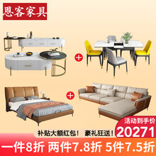 恩客家具 全屋套餐家具 皮床沙发茶几电视柜餐桌椅床垫全屋成套家具客厅卧室餐厅整套家具组合 茶几电视柜+餐桌椅~两件套装